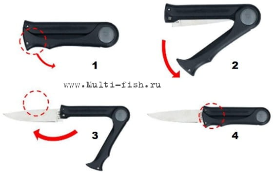 Особенностью данного ножа является то, что ручка в сложенном состоянии полностью скрывает острое лезвие. Это намного безопаснее и предохраняет от случайного раскрытия ножа в неподходящий момент. Компактные размеры позволяют расположить нож в кармане одежды или отсеке рыболовных рюкзаков и сумок.