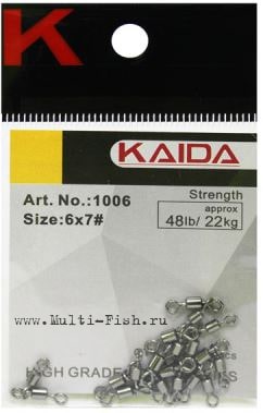 Kaida 1006 - это дополнительный элемент оснастки, немаловажный в формировании снасти. Вертлюг в соединении двух частей снасти выступает в роли шарнирного звена, позволяя избежать закручивания и спутывания лески.