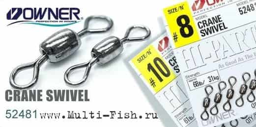Owner Crane Swivel 52481 - силовые вертлюжки серии применяются для крепления приманки или фидерной кормушки к основному шнуру в условиях, когда требуется повышенная прочность оснастки.