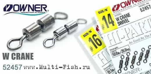 Owner W Crane Swivel 52457 применяются в монтажах, требующих повышенной прочности и использующихся на течении, где высока вероятность перекручивания лески.