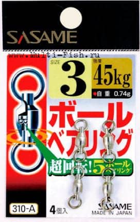 SASAME 310-A применяется для оснащения поводкового материала и соединения мантажей, что предотвращает перекручиванию основного шнура или лески и благоприятно сказывается на игре приманки.